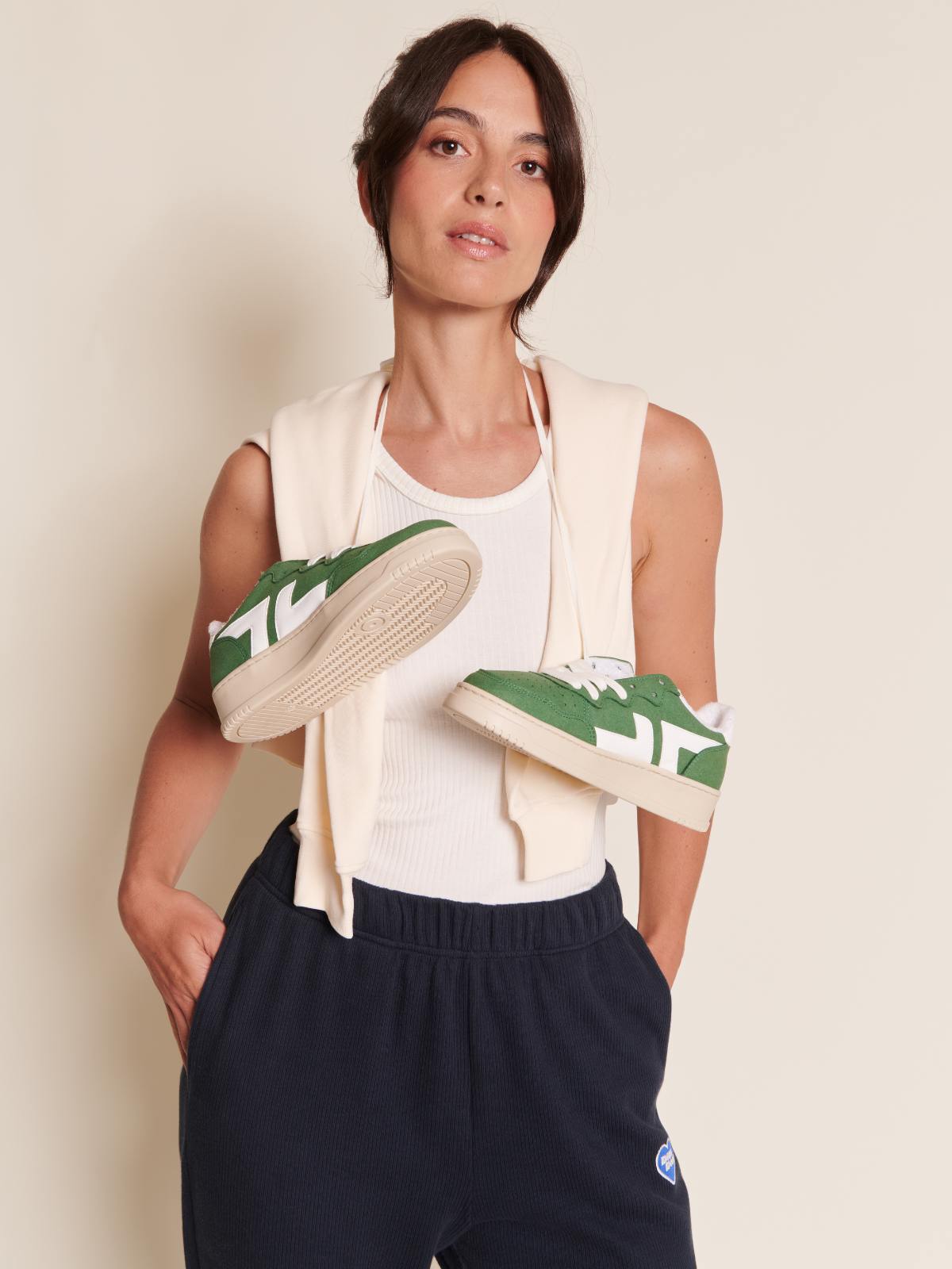 La collaboration entre Zèta et émoi émoi est une ode à mère nature, avec un extérieur en suède vegan, des matières végétales fabriquées à partir de céréales sans pesticides, une semelle intérieure amovible en mousse 100% recyclée, des lacets en coton recyclés, une étiquette en polyester recyclé et une boite en carton recyclé.