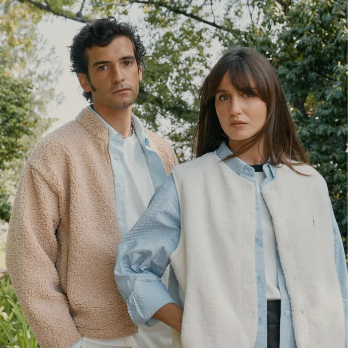 Luisa mesure 1m70 et porte une taille M.› Comment porter une veste Sherpa ?La sherpa est une pièce intemporelle et polyvalente. Vous pouvez la porter en veste légère sur un t-shirt ou une chemise, la superposer à un pull ou encore la glisser sous un manteau les jours plus froids. Sa coupe légèrement oversize la rend facile à associer, sans tomber dans le look trop technique. Elle est idéale avec un jean, un pantalon large ou même un jogging bien choisi.› Comment laver cette polaire ?Nous vous recommandons de la laver en machine à 30° sur un cycle doux, puis de la laisser sécher à l’air libre. Pas besoin de sèche-linge, qui abîmerait la fibre et consomme beaucoup d’énergie. L’idée est de garder sa douceur et sa tenue, tout en respectant la planète. Et comme elle ne retient pas facilement les odeurs, l’aérer entre deux ports suffit souvent.Livraison et retour